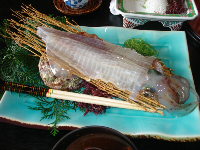 しかもそれだけでなく、イカの活き作りまで出た!これ別注だと思ってたのに、相当立派なおイカ様がビチビチしながら出てきました。この大きさを2人で食べられるとは・・・。もちろん、お刺身で食べた後は残りの部分を好みの調理方法で料理してくれますよ。