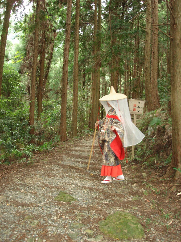 これはほんと一度はやってみたかった、若いうちに(笑)那智山を徒歩で登るときに使う大門坂の入口付近にあるお茶屋さんで衣装の貸し出しをしてて、衣装を着て夫婦杉周辺を1時間ほどプラプラ出来るコースと、本格的に大門坂を登って青岸渡寺まで行くコースとあります。まぁ、後者は気候の良い時で、ガッツのある人に限るとは思うけど。