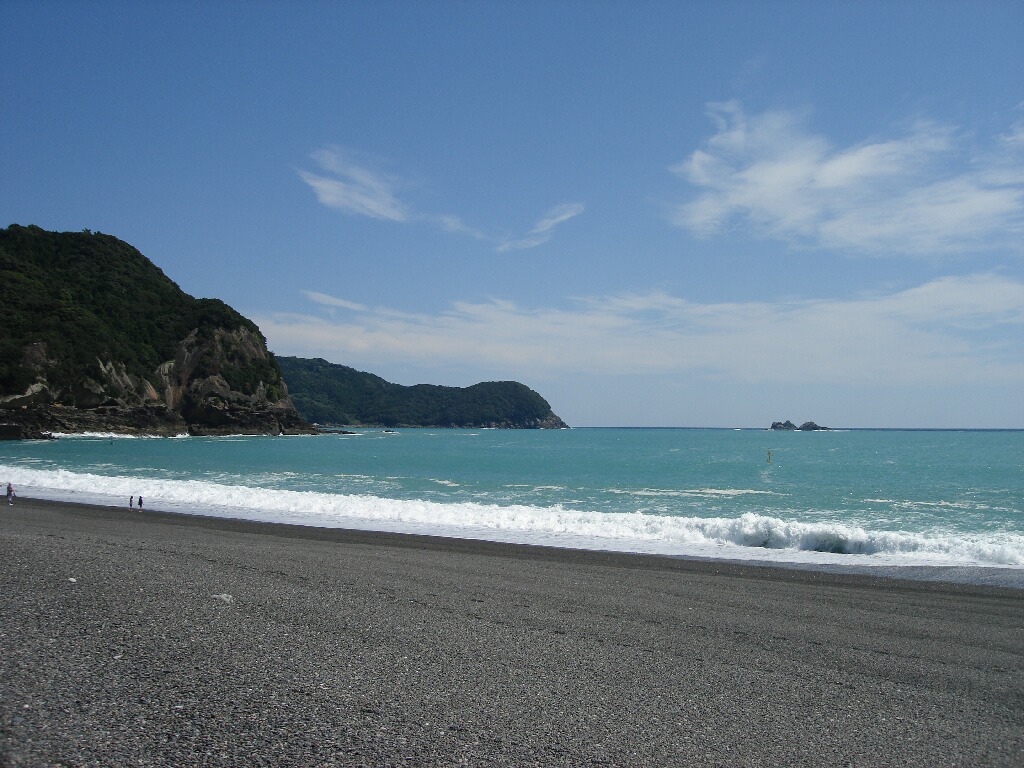 熊野市にある七里御浜は本当に美しかった・・・(溜息)なんだろう、太平洋側なのに海の色がものすごいエメラルドブルーでここは沖縄かって錯覚に陥る場所だった。その日の太陽の加減にもよるんだろうな、次の日見た時はそんな色じゃなかったし。ただここ、恐ろしく波が荒い!