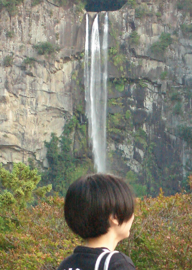食後はずーっとお寺の参道を下って那智の御滝の真下まで行ったぞ!!ホントにすっごい真下まで行けた!有料で(笑)¥300也。言うまでもなくマイナスイオンがそこらじゅうに満ちてました。悦。でもなんだろう、遠くでみるほど大きさ高さは感じなかったな。いや、十分に立派な滝なんだけど。なんてったって那智の御神体ですし。