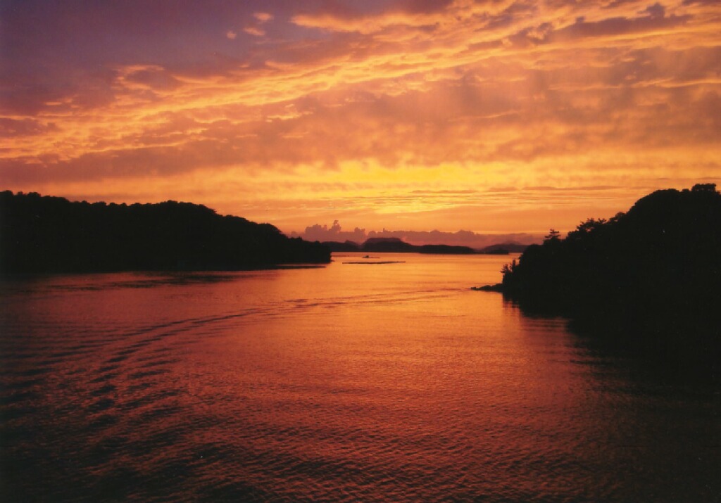 九十九島の夕景が美しいのは知ってたけど、実際目にすると感動・・・。夕焼けって気象条件で変わるけど、この時は条件が揃ってこんな風に焼けてくれたみたい。この写真はデジカメで撮ったけど、デジカメでここまで美しく撮れるって事に感動したのと、何より世界はこんなに美しいって素直に感動した事が私を写真マニアの道に走らせたと、これが人生の転機。