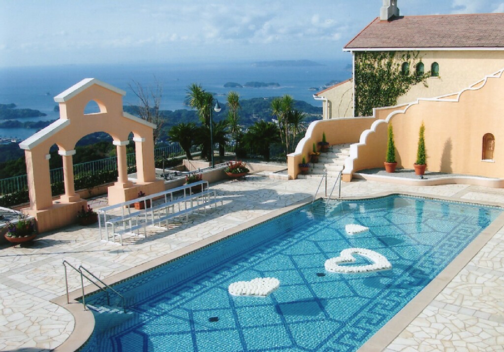 右もお気に入りの写真。テラスから撮ったけど、丁度ガーデンプールが結婚式使用になってってかわいらしい。