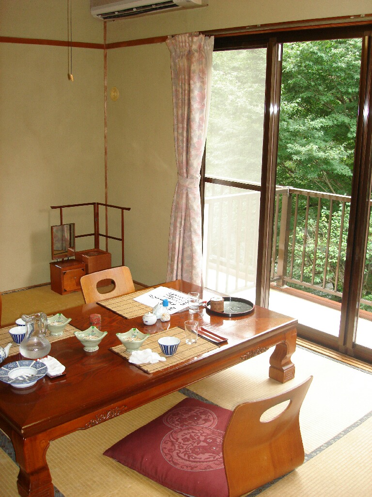 場所は、旅館組合の横なので結構高台にあって見晴らしがいいです、というか今回は一番安いプランの窓のない和室で予約したんですね、ハイ。窓がないので風景は一切見えません、光も差し込みません、風も通りません。でも、この部屋がすごいおもしろい構造なんですよ!