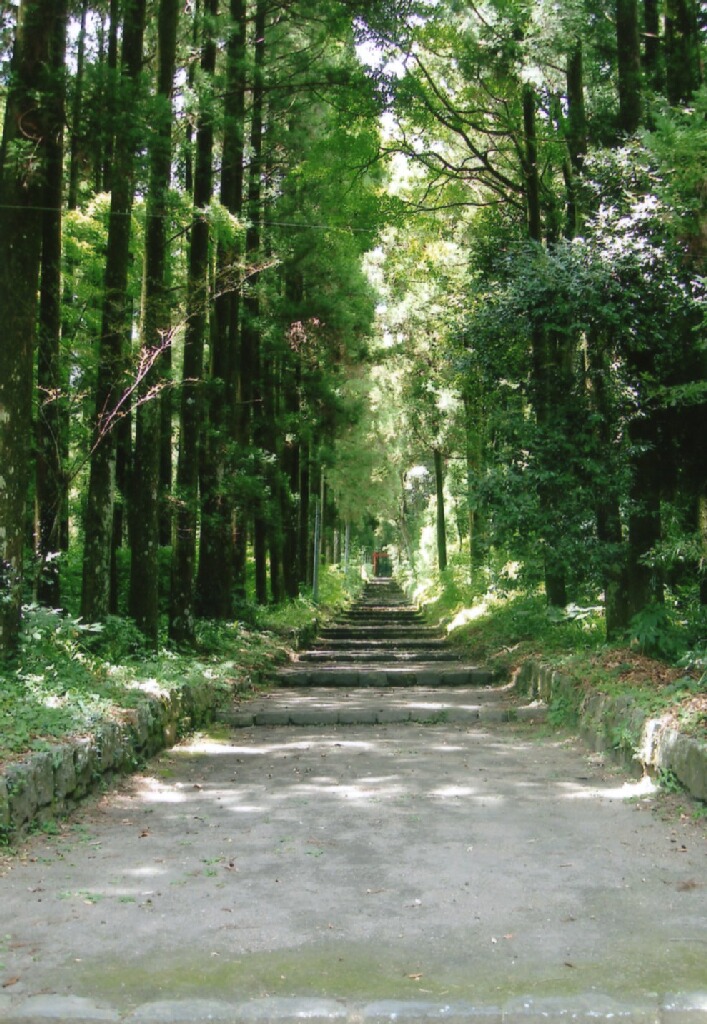 土産のチーズ饅頭を大量に買い込んで(50個近く買ったゼ)霧島バードラインを走っていたら、なにやらひどくひきつけられる神社を発見。管理人、寺社仏閣巡りが趣味なんでこういうことにはビビっとくるんですが、この神社はものすごい引力があった。こんな田舎にこんな立派な鳥居があるってとこも気になりましたがとりあえず車を止めていざ参拝へ。
