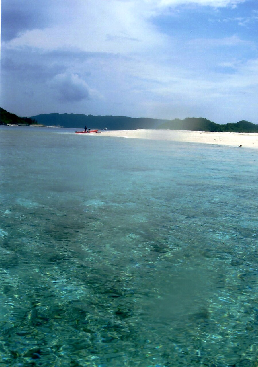 慶良間の海の透明度は世界一、となんかで読んだことがあるけど、ここではそれを実感できた。恐ろしいほどの透明度で、渡し舟の上からでも泳いでる熱帯魚や底のサンゴが見えるのだ!!前日行った古座間味も透明度はかなり高かったけど、それよりはるかに美しい・・・!天気が良かったので水中に光が差し込んで圧倒的なブルーの世界になってる。ウルトラマリン、コバルト、セルリアン、プルシャンなどなど一面ブルー!それに空の青が乗っかって本当にキレイ・・・(溜息)
